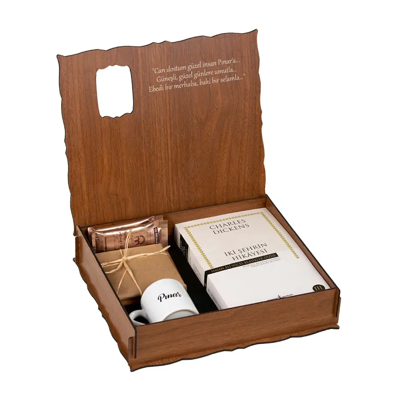 Setin içeriği Charles Dickens’ın “İki Şehrin Hikayesi” kitabını içerir ve kitaplığındaki yerini alacak özel bir tasarıma sahiptir. Aslan burcu genellikle estetik ve lüks detaylara değer verir, bu nedenle bu kitaplı hediye seti onun zevklerini tatmin edebilir. Ayrıca, içindeki kitabı okurken kullanabileceği bir fincan veya bardak da içerebilir. Bu set, Aslan burcu erkeğinin edebiyatın büyüleyici dünyasına dalmasına ve keyifli anlar yaşamasına yardımcı olacak özel bir hediye seçeneğidir. Ürün set içeriği şu şekildedir;