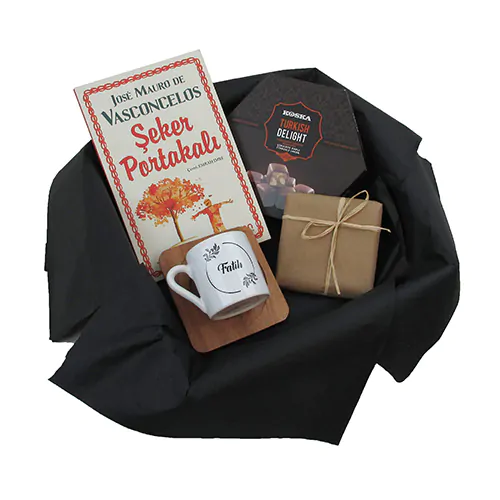 5- Kişiye Özel Kitaplı Fincan-Lokum-Çikolata Hediye Seti