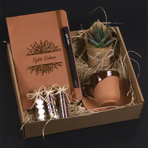 Ev hanımları gün içinde evde oldukça sıkılabilmektedir. Kayınvalideniz daha keyifli zaman geçirsin isterseniz ona zaman zaman ufak hediyeler götürüp gününü güzelleştirebilirsiniz. Kendine vakit ayır hediye seti kayınvalidenizin gördüğü anda hayran kalacağı bir settir. İçinde üzerine ismini yazdırabileceğiniz taba rengi bir defter ve metal kalem bulunmaktadır. Bu ürünlerin yanında toprak bir fincan, küçük bir canlı çiçek ve küçük bir cam kavanoz içinde şekerlemeler ve kahve çekirdeği gelmektedir.