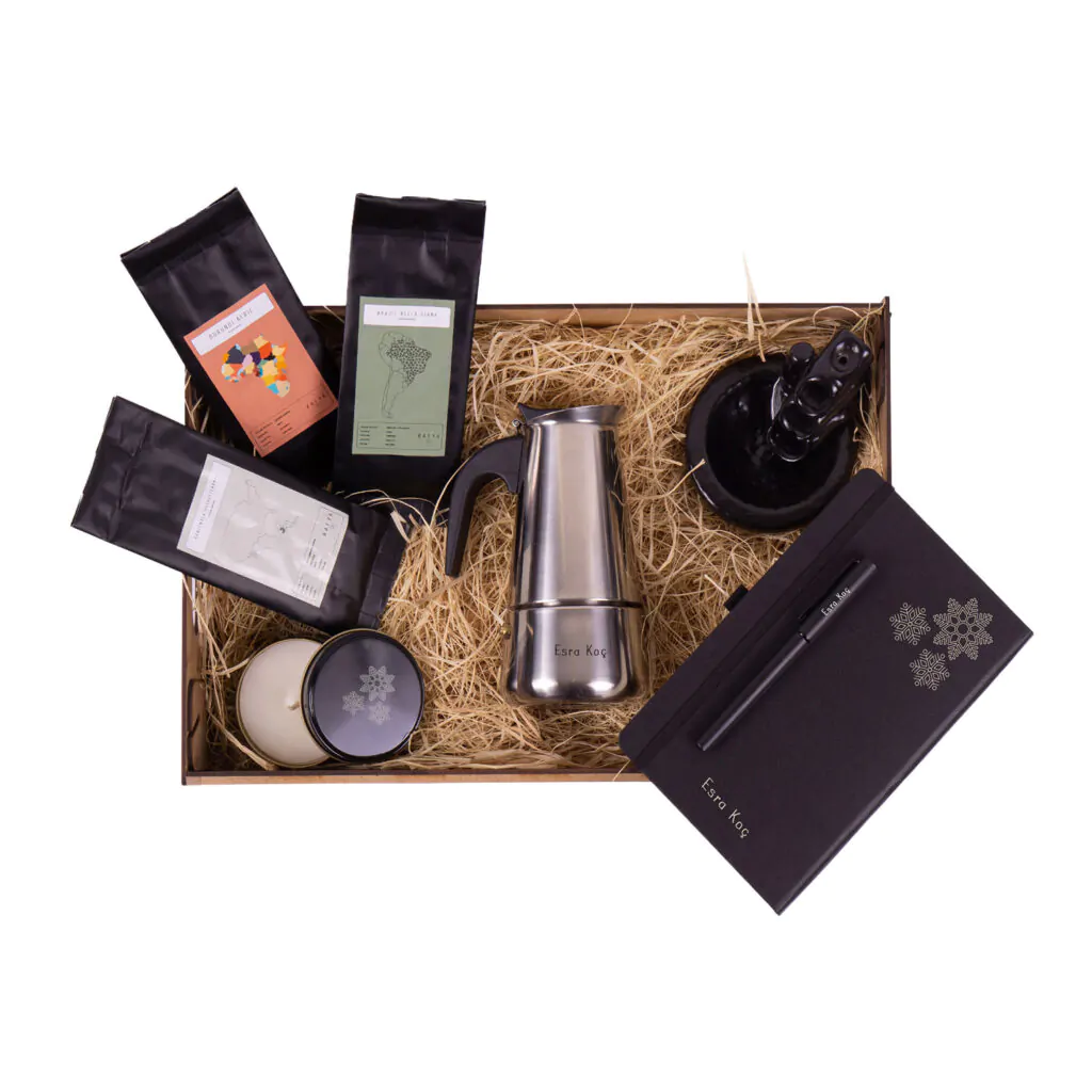 Öğretmene yılbaşı hediyesi olarak seçebileceğiniz bu premium set, Mocha pot ve özel kahve çeşitleriyle günlerini tatlandıracak. Kişiye özel siyah metal kalem ve kar taneleri tasarımlı tarihsiz ajanda ile öğretmeninize günlük kullanıma uygun hediyeler sunmuş olacaksınız ve sürekli hatırlanacaksınız. Vanilya aromalı kokulu mum ve geri akışlı tütsülük ise onun rahatlamasına yardımcı olacak.