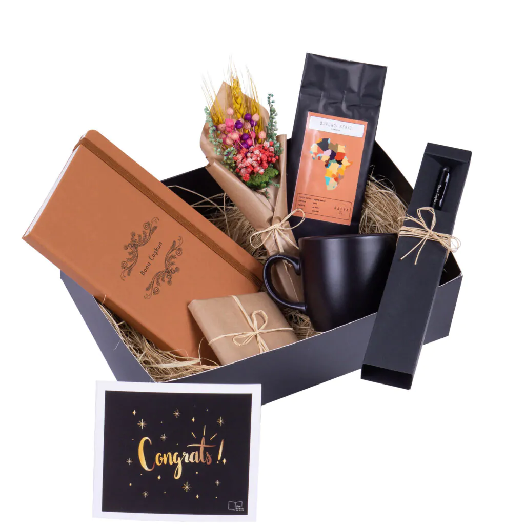 7. Set içindeki tüm ürünler gibi isme özel baskılı siyah kurumsal hediye kutusu.